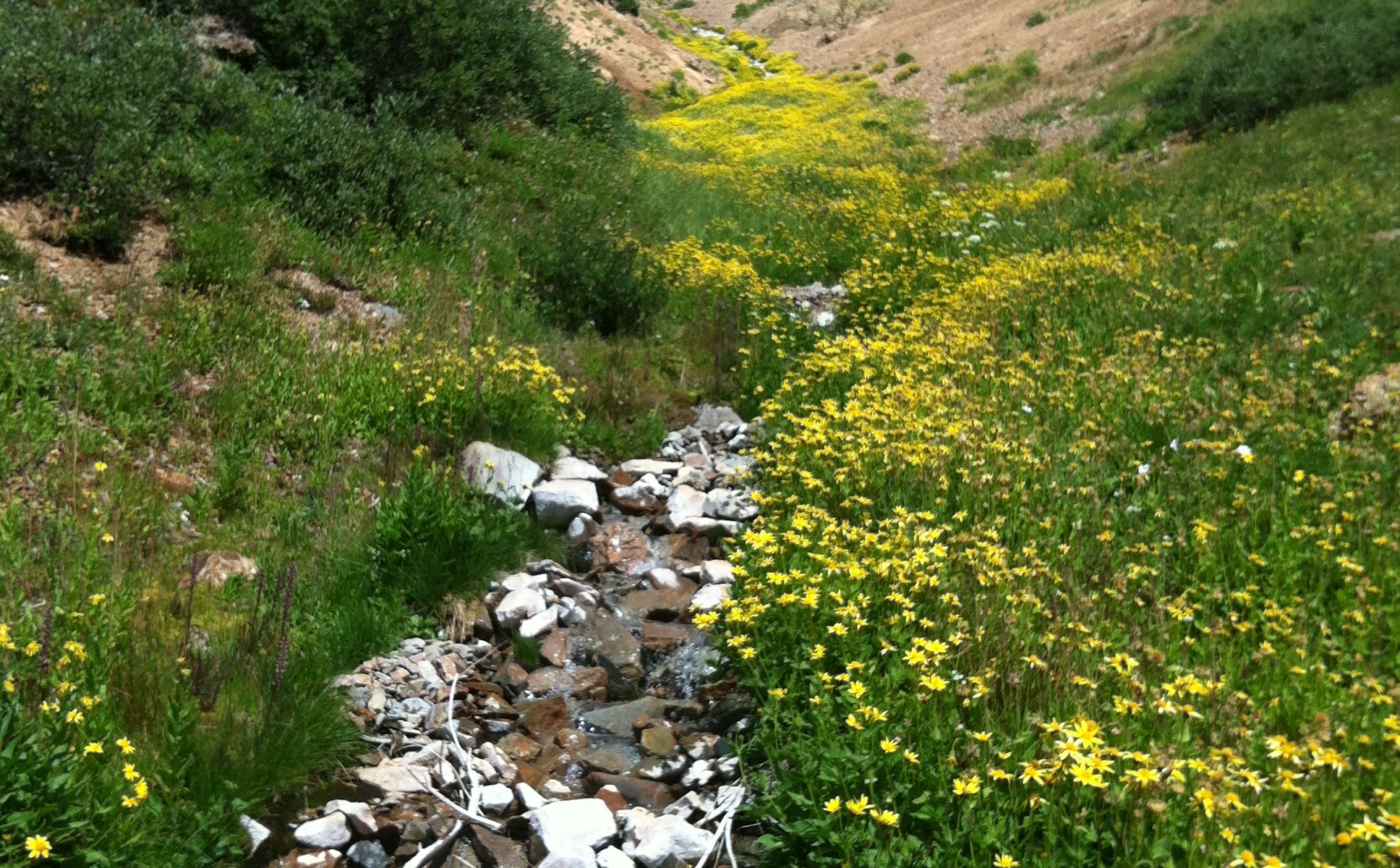 On Sunday morning, still in Silverton, I woke up early, much earlier than I wanted, to run up the road and then up the trail to Ice Lake Basin, so I could let Pacer sleep in the car while it was still cool out (I was back before it hit 60 degrees and the windows were open. The sky window is one of the best features on my 2002 Subaru!) I wasn’t able to make it up to the lakes, but I was so joyful on that run and had the biggest (and probably goofiest) smile on my face because it was so beautiful and the trail was so awesome. After breakfast at the campsite, I headed into town to call my dad and wish him a happy birthday. (He treated himself by sleeping in until 9:30…he’s been waking up before 5 a.m. since he was a little boy.). After driving around the mines a bit, getting a Thai wrap to go at Avalanche Brewing (Saturday I had the Thai salad) and completing the Thai triad, we started the drive towards Durango, where we had a hotel for the night so Pacer could rest and I could get some work done not sitting in the car, getting wifi from the visitor center. Back to my journal: